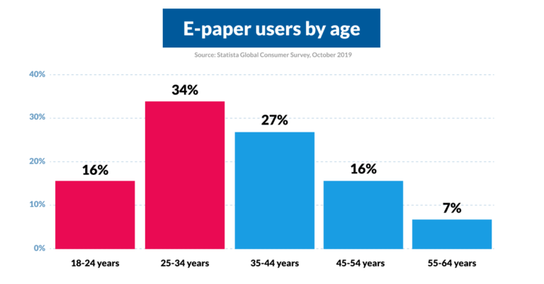 E-papers are also ideal for reaching younger target groups. In 2019, 50% of the readers were between 18 and 34 years old.